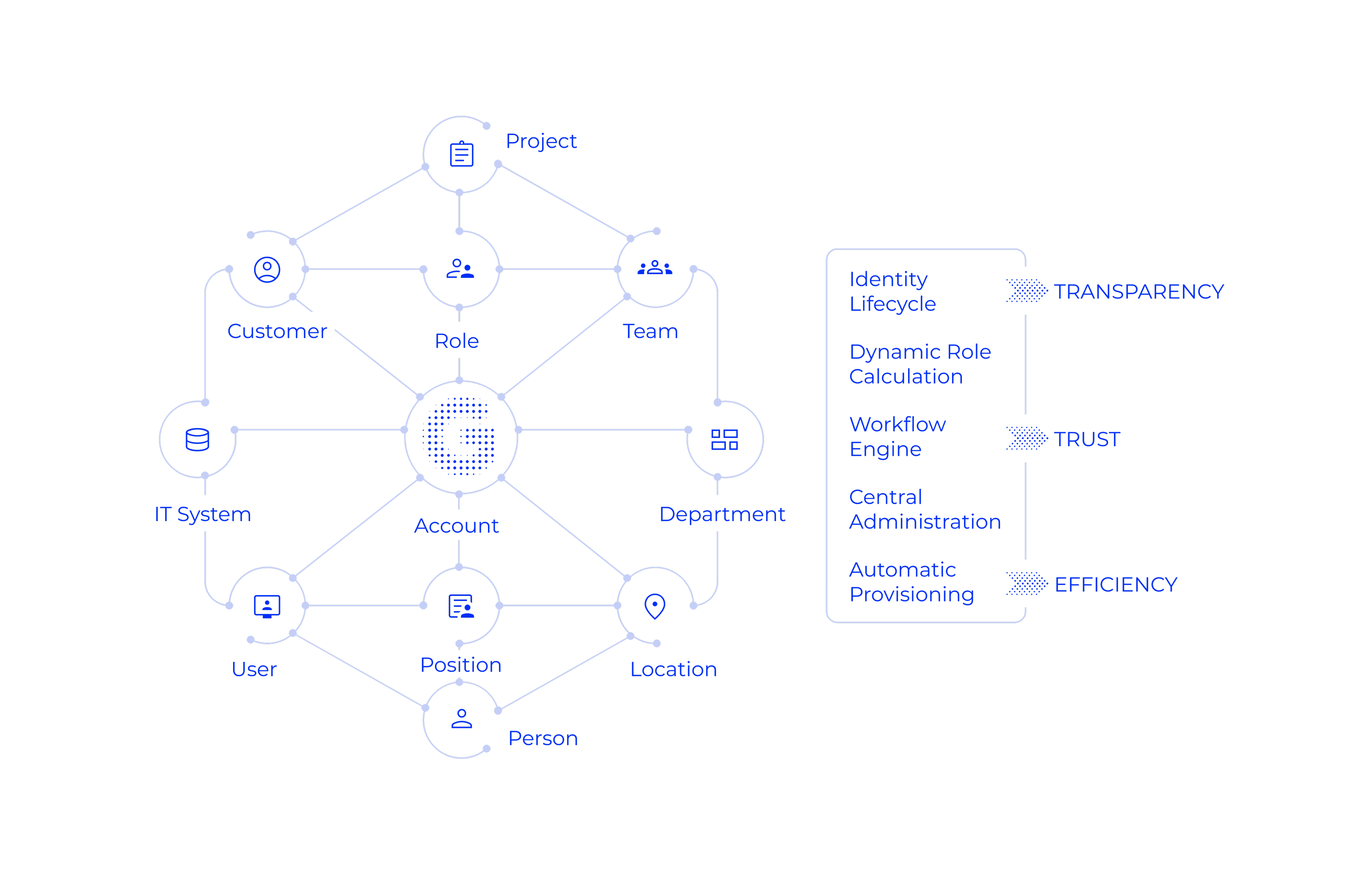 Simplify provisioning and documentation processes while simultaneously increasing IT security in your company. Our all-in-one solution centralizes identities from HR and IT and guarantees seamless access even during complex organizational changes.