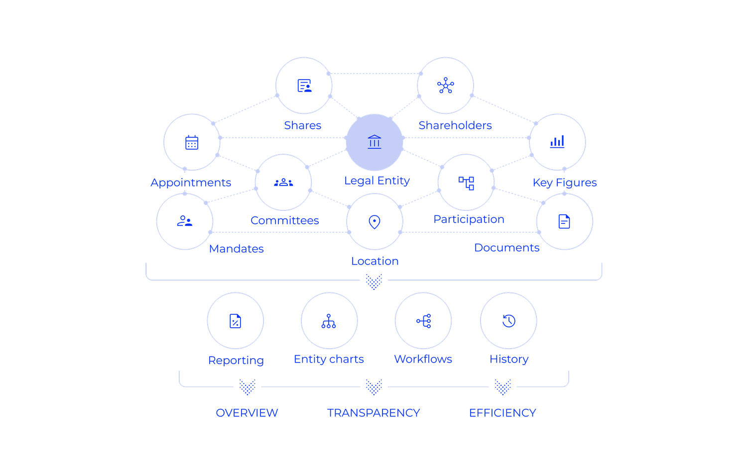 Our LEM platform consolidates complex ownership and mandate structures into a transparent, audit-proof 360° overview. This makes seamless corporate governance a reliable basis for your compliance.