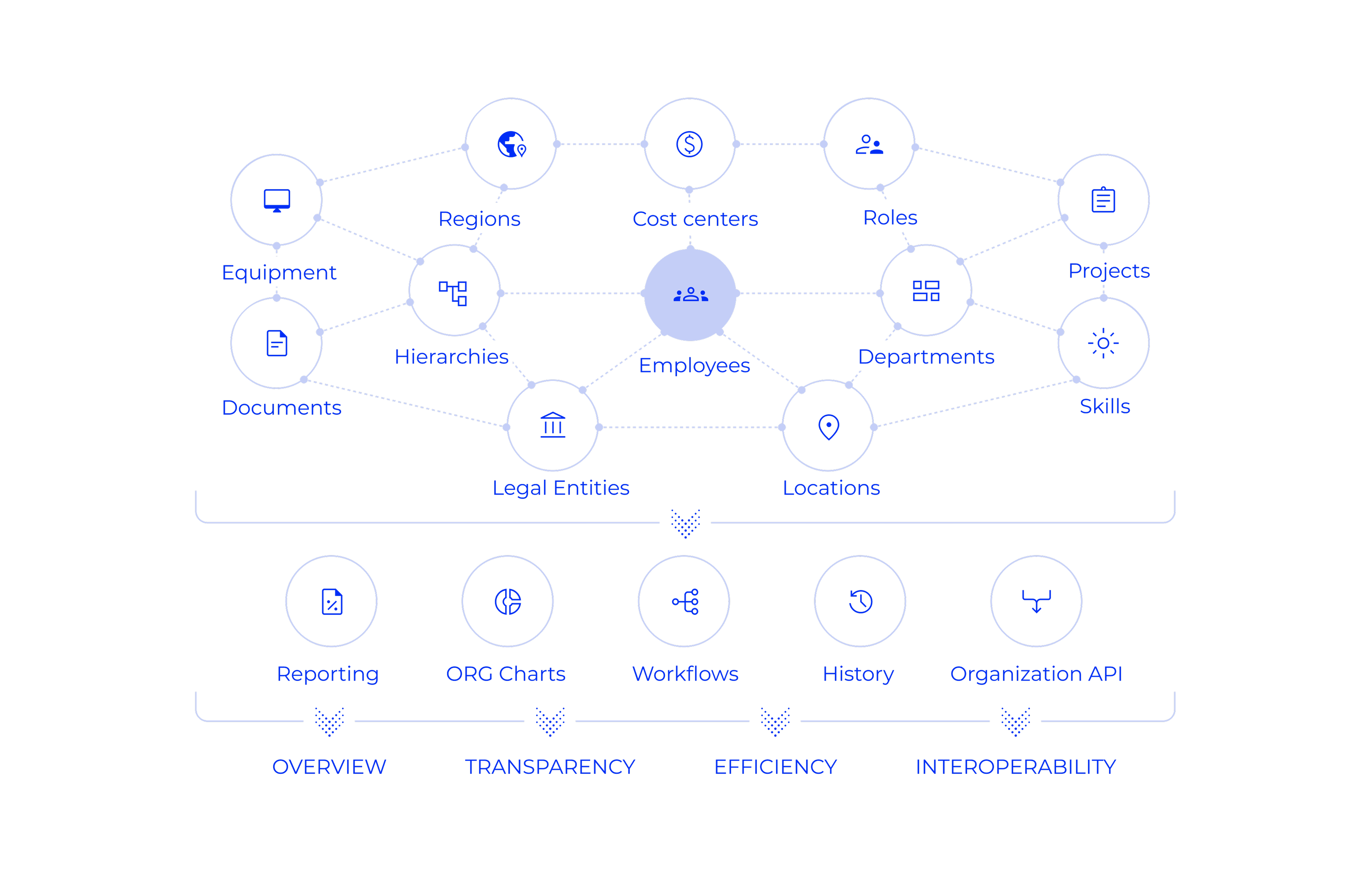 Transform rigid organizational charts into dynamic management tools. Connect employees, roles, and hierarchies across departmental boundaries into a transparent, unified organizational structure.